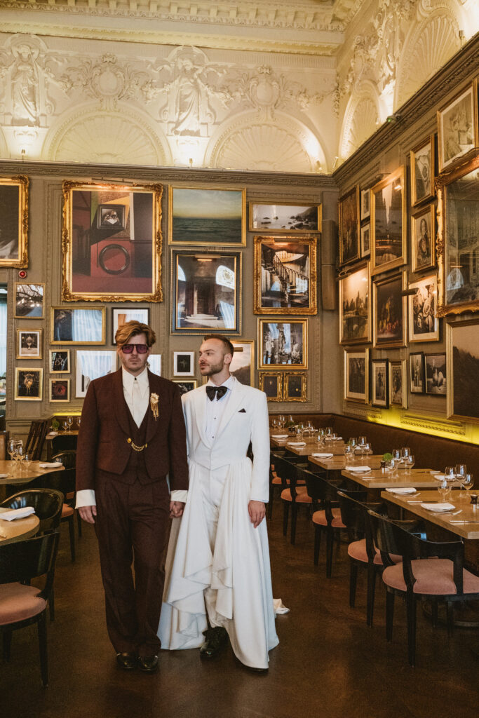 David and Connor embraced editorial fashion aesthetics throughout the day. Think couture suits with unexpected textures, statement accessories, and layered looks that evolved with each venue. Their guests were encouraged to express individuality and bold style choices, creating a visual feast for photographers.